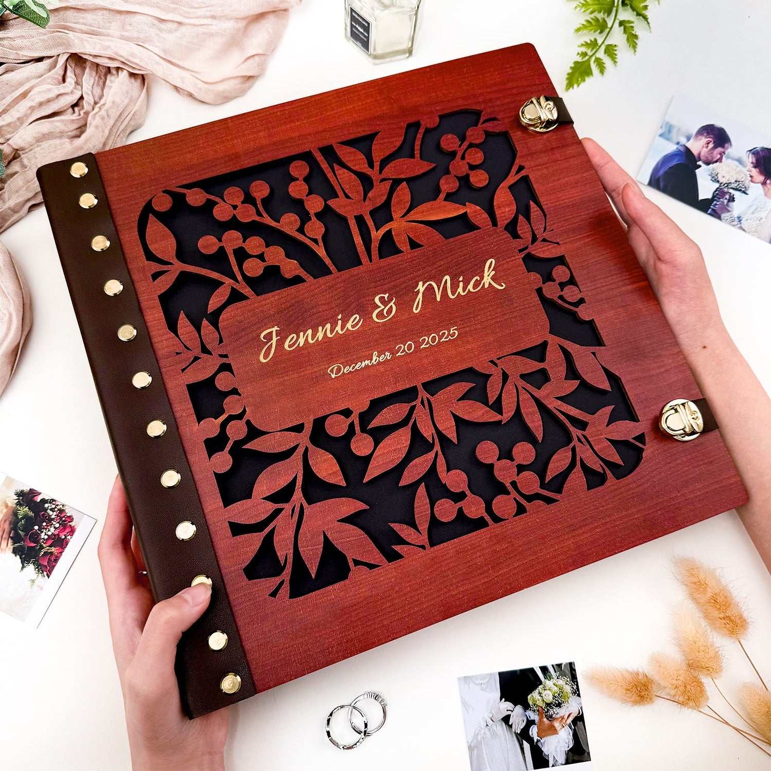 Personalized Family Photo Album – Heart Cutout Wood Cover