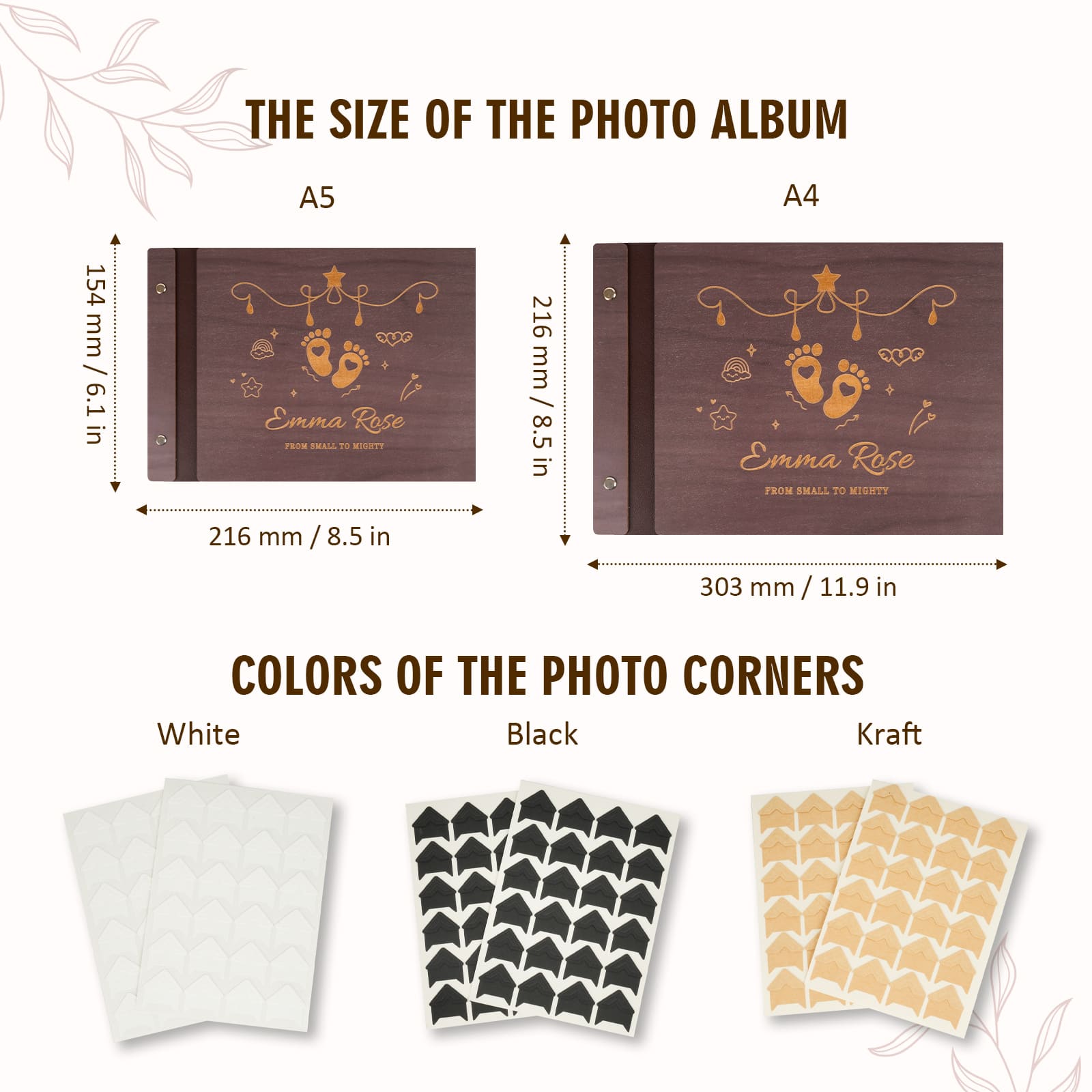 - Size for wedding photo album: A5 (6.1 x 8.5 in)、A4 (8.5 x 11.9 in)