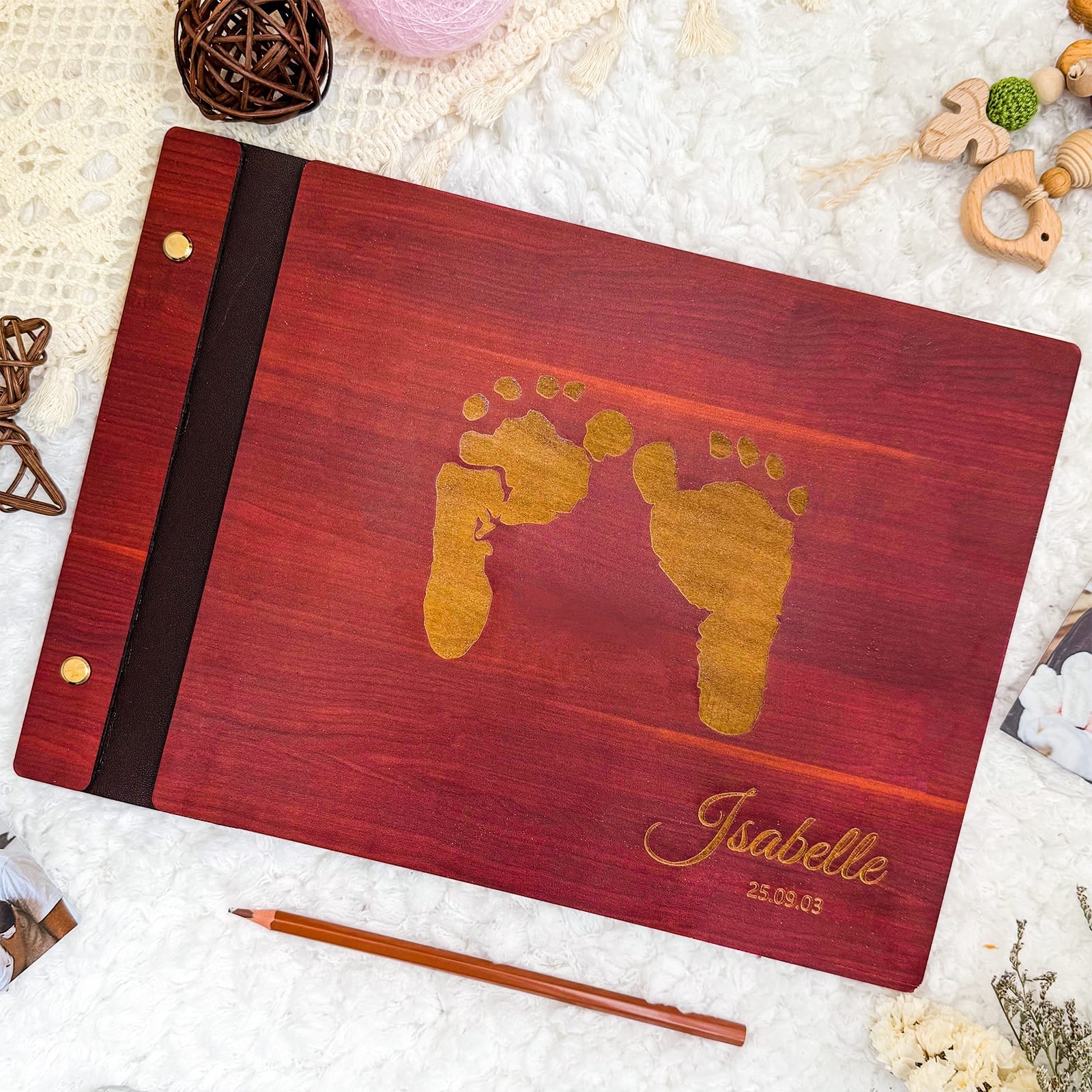 Celebrate your little one’s first memories with our handcrafted personalized wooden baby photo album. Made from premium solid wood, this elegant scrapbook features a laser-engraved footprint design, your baby’s name, and birth date – creating a timeless keepsake for photos, milestones, and precious moments. Perfect as a newborn gift, baby shower present, or christening keepsake, this custom album blends natural beauty with heartfelt personalization. Preserve every smile, tiny hand, and cherished story in a book that grows with your child.