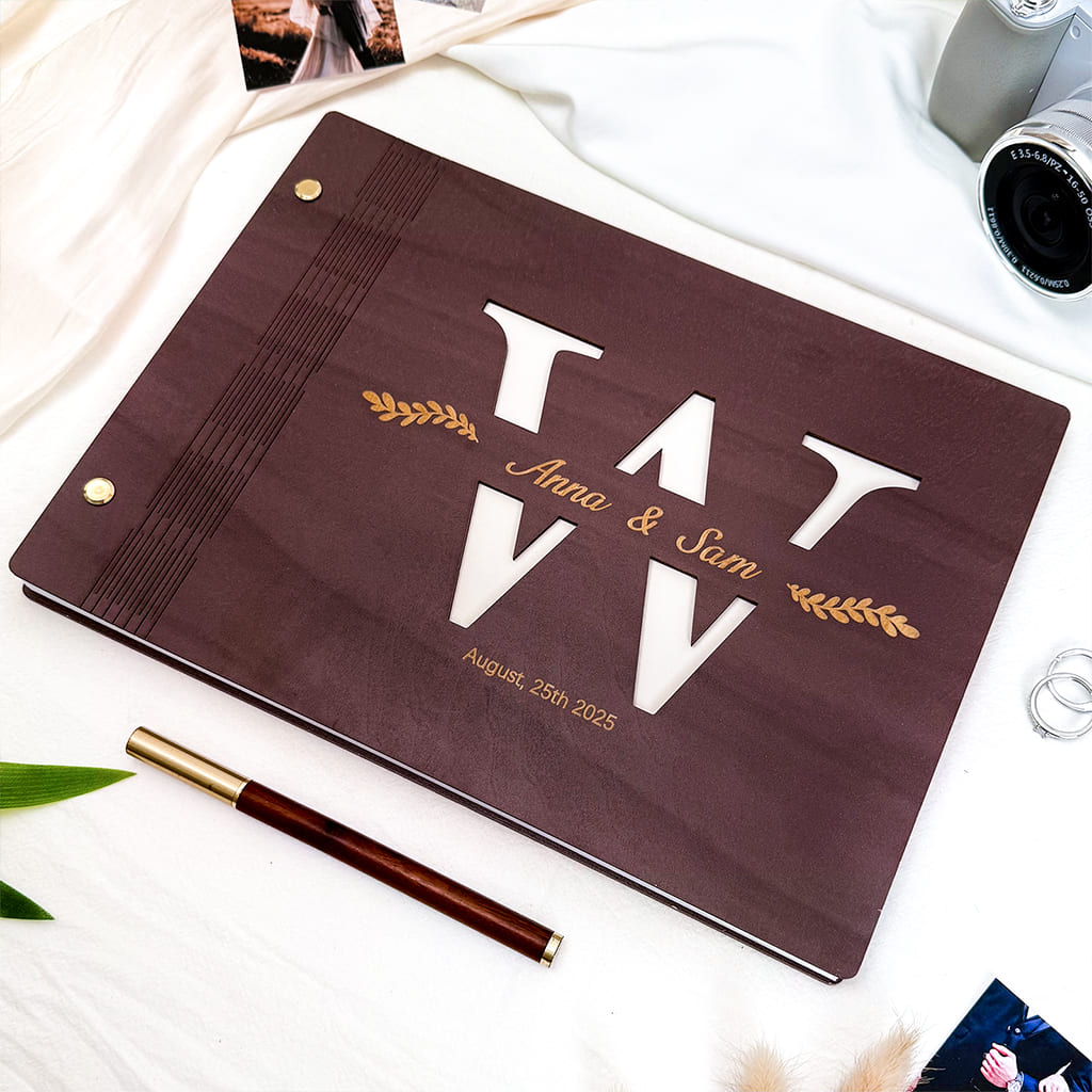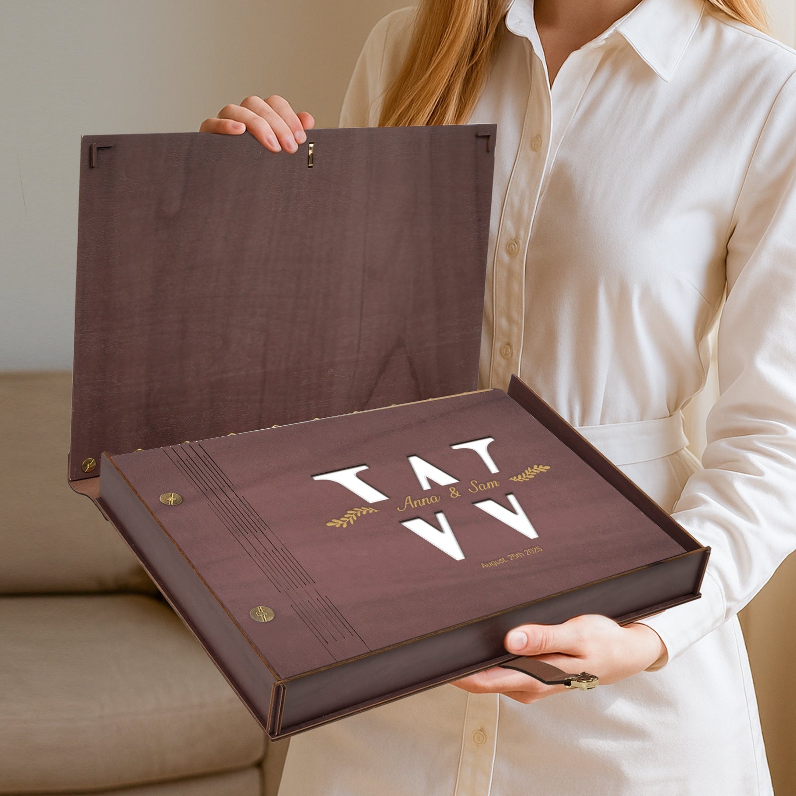 It’s a beautiful Wedding Photo Album made of wood and leather that will accurately keep your memories about this special day. And years after you’ll look through it and your memory will fly you back to such a happy day.