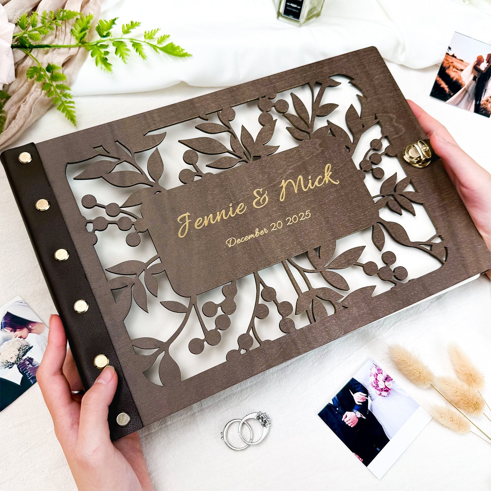 This gorgeous wooden photo album with leather binding will be the best gift for wedding,