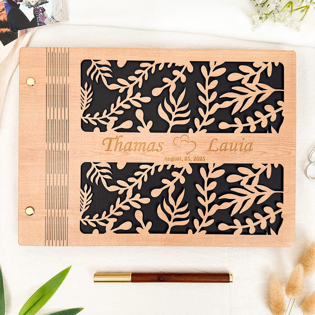 Wooden Wedding Guest Book - Personalized Laser Engraved Photo Album